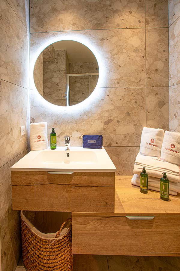 Our suites are real little flats, with a kitchen, a double bedroom, a children’s corner with 2 bunk beds and a sofa bed in the lounge. Their balconies overlook the garden or the La Ménado pool. They are cosily decorated with all the charm of Provence in every detail. Havens of wellness.