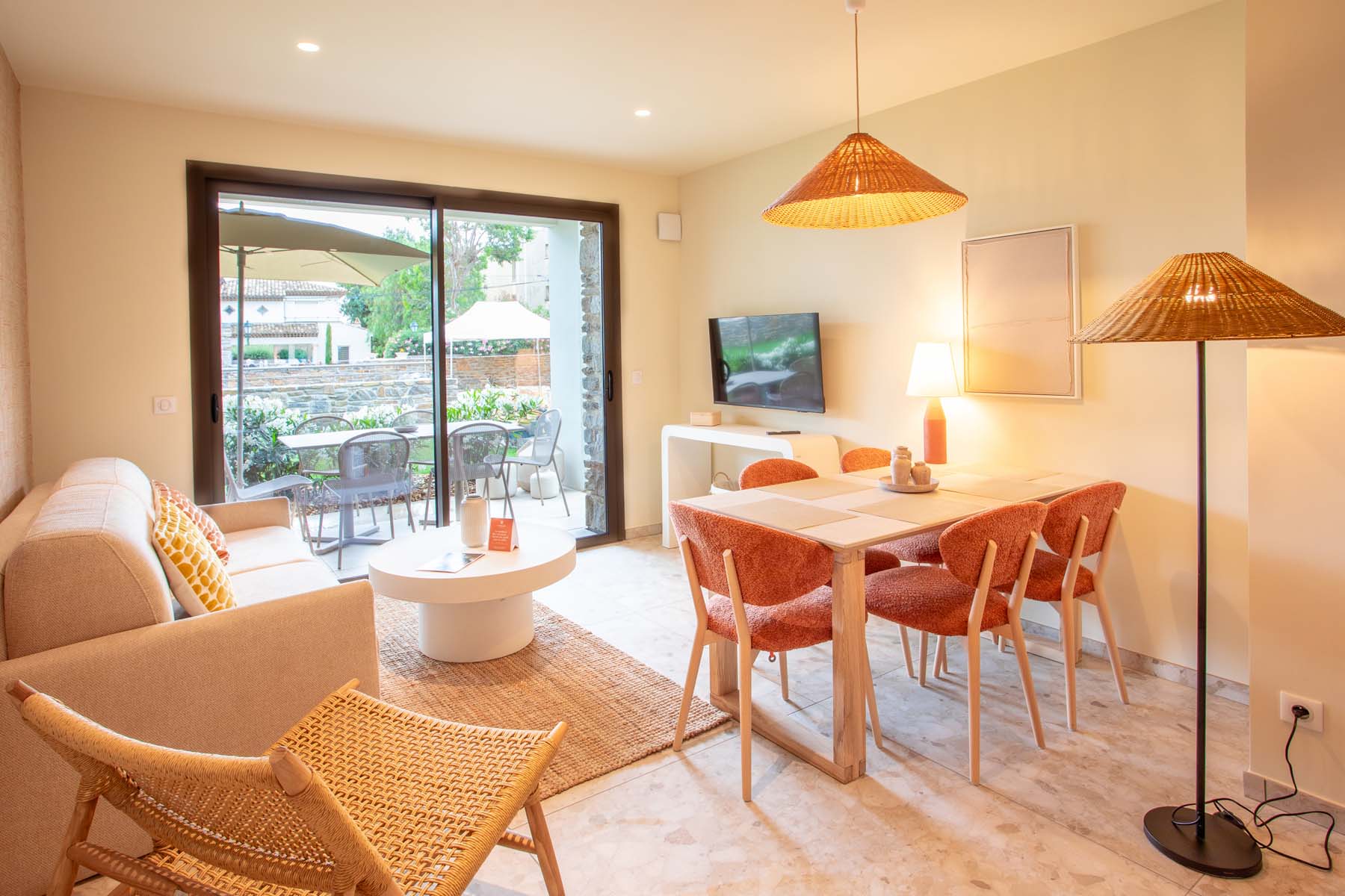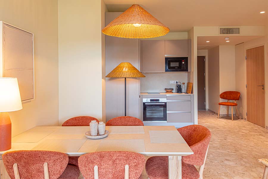 Unsere Suiten sind wie kleine Wohnungen ausgestattet mit einer Küche, einem Doppelzimmer, 2 Etagenbetten, ideal für Kinder, und einem Schlafsofa im Wohnzimmer. Von ihrem Balkon aus haben Sie einen Blick auf den Garten oder den Pool von La Ménado. Der Charme der Provence zeigt sich in jedem Detail ihrer gemütlichen Einrichtung. Eine Pause zum Wohlfühlen.