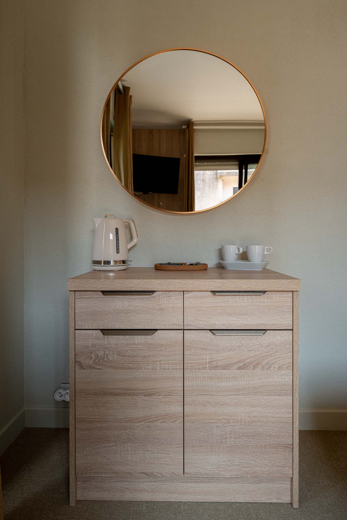 In unseren Zimmern finden Sie einen Minikühlschrank, ein Willkommenstablett mit Wasserkocher und kostenlosen WLAN-Zugang, damit Sie während Ihres gesamten Aufenthalts in Verbindung bleiben können.